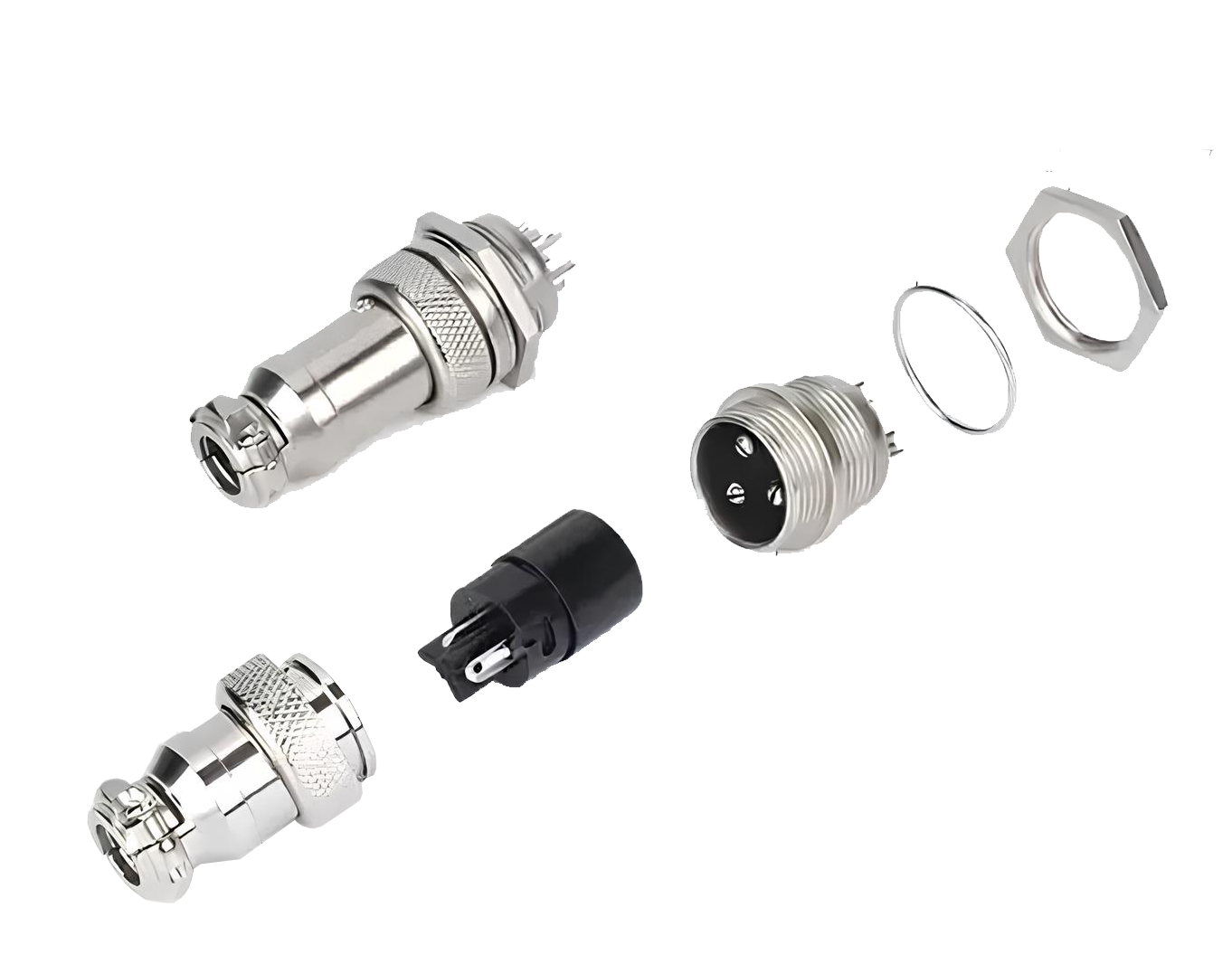 4-х контактный разъем GX16-4 – коннектор ручного соединения, цилиндрический, внутреннего объемного монтажа. Корпус соединителя изготовляется из цинка и никеля, а внутренний изолятор из бакелита. Разъем является пылезащищенным.